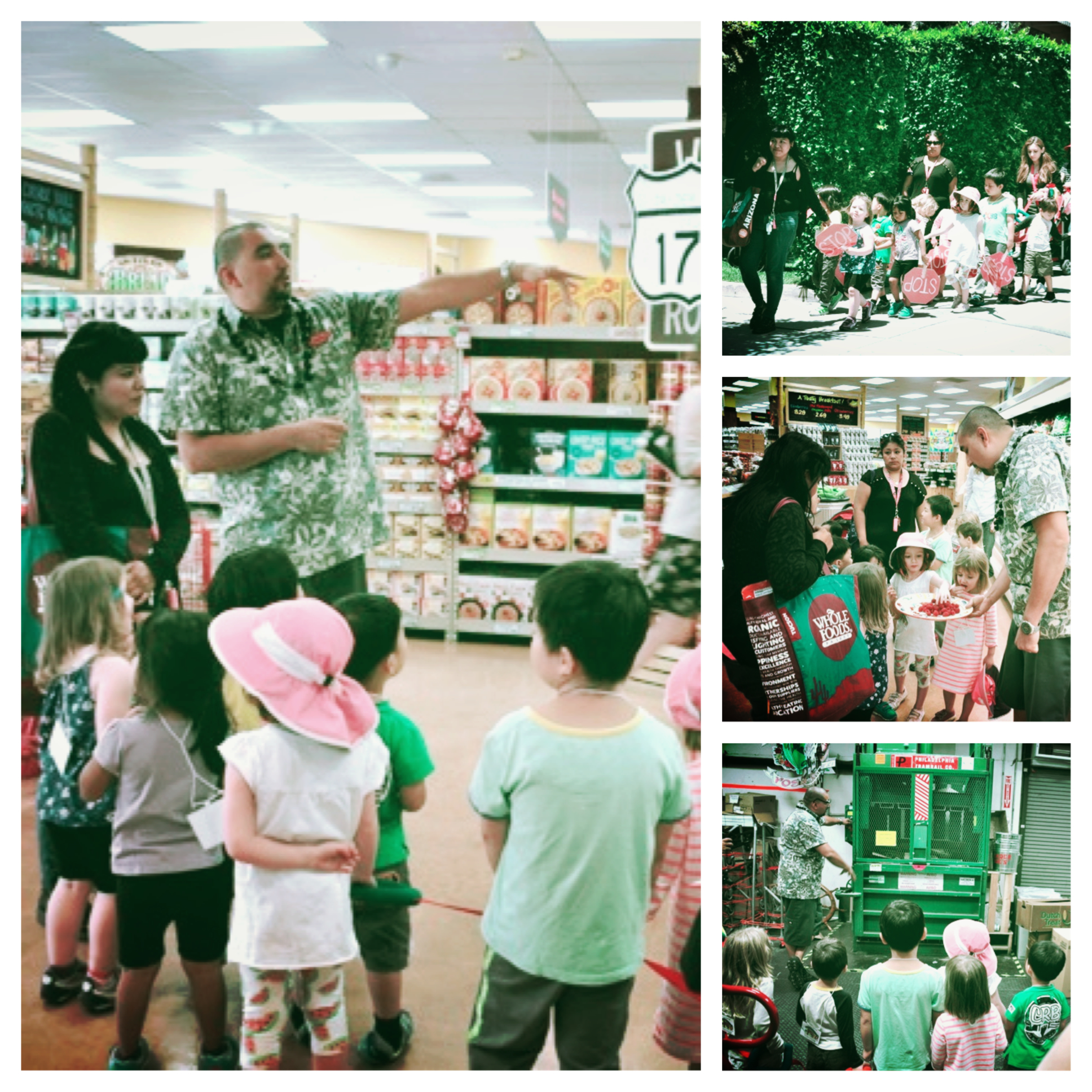 Some of the beautiful art crafts made this week included paper soccer balls, a baseball mitten and glove, basketball handprints and little footballs. This past Wednesday the children went on a walking field trip to our local Trader Joe’s Market. The kind staff at TJ’s gave the children a tour of their facility, which included both the inner and outer working — they saw the back room where all the inventory is unloaded and then placed on the store shelves. Each child was able to sample delicious food from the store. The TJ’s staff gave each child a goodie bag (re-usable Trader Joe’s shopping bag) containing healthy food to take home! We are looking forward to the next awesome week of Saint Victor’s Preschool Summer school!