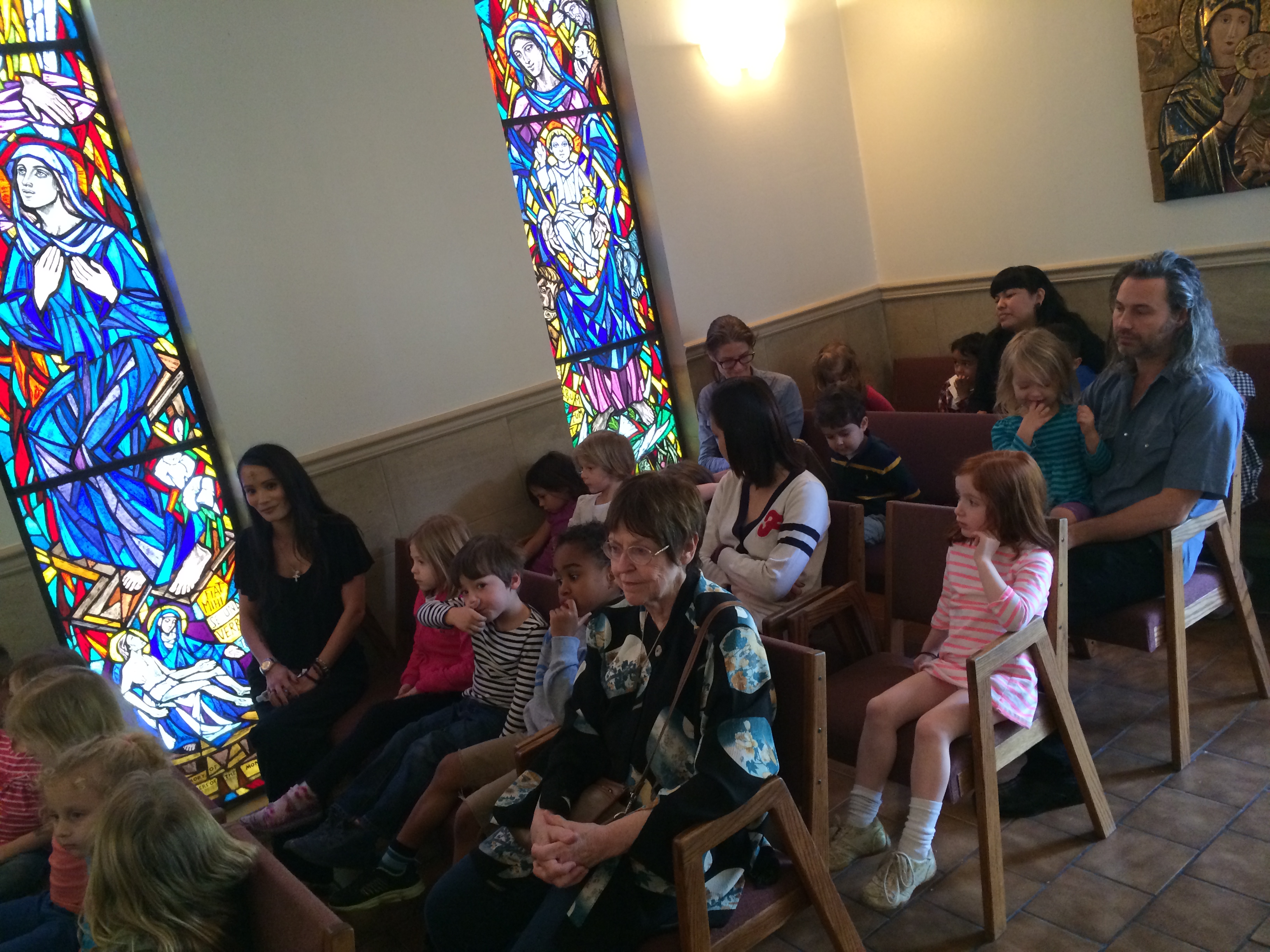In observance of Ash Wednesday, the staff, children and parent volunteers of Saint Preschool attended the noon mass at Saint Victor Church to receive ashes. Monsignor Murphy asked that the children be kind to each other, their friends, teachers and parents. The overall message of the mass was: