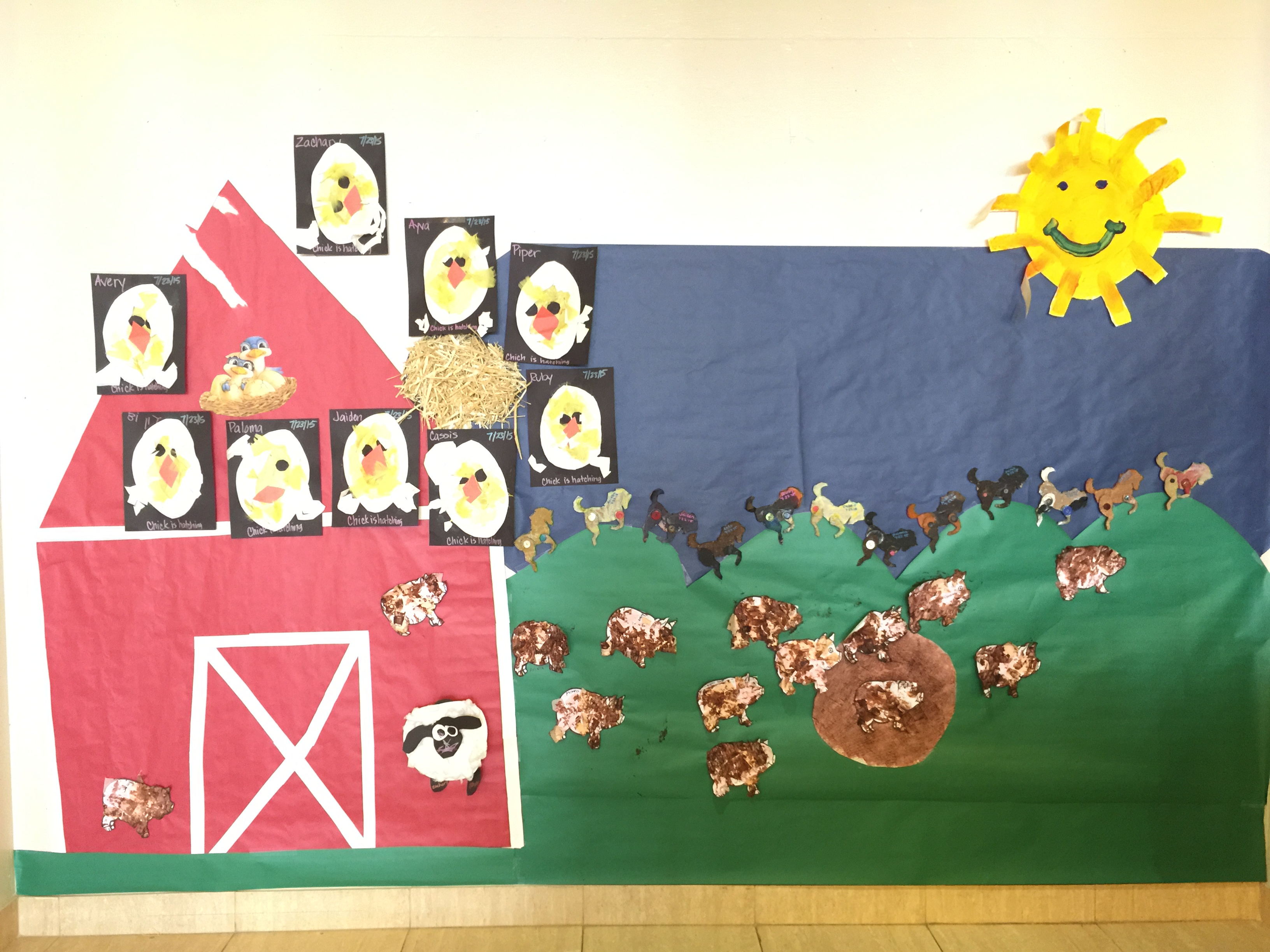 “Farm animals” was the theme for our third awesome week of summer school! We talked about various farm/barnyard animals including cows, horses, chickens, pigs and sheep! The children learned that cows make milk, chickens lay eggs and pigs like to roll around in the mud to keep themselves cool.